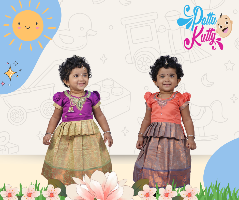 Celebrate every special occasion with the finest silk pattu pavadai for young girls. Our collection features vibrant colors and intricate designs, ensuring both tradition and beauty for girls from 1 to 13 years