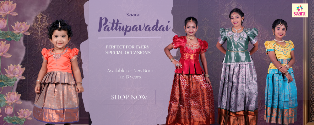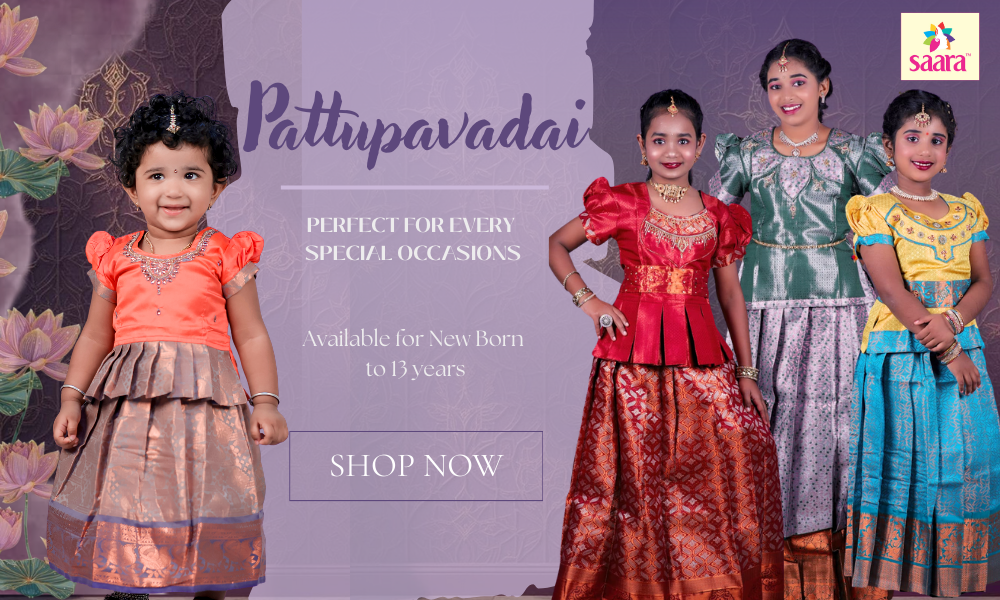 Explore our Navarathri Pattu Pavadai collection for girls (newborn to 12 yrs). Shop silk pavadai online – soft, vibrant, and perfect for festive celebrations.