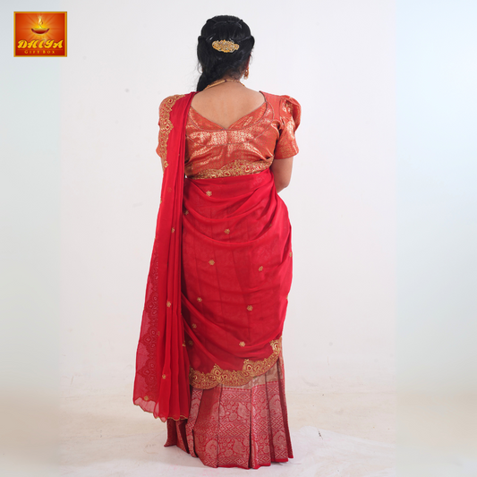 Red & Peach Half Saree for Teen Age Girls | Women traditional wear