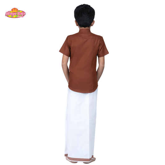 Brown Shirt & White Dhothi | Boys Dhothi Set | Kids Ethnic Wear