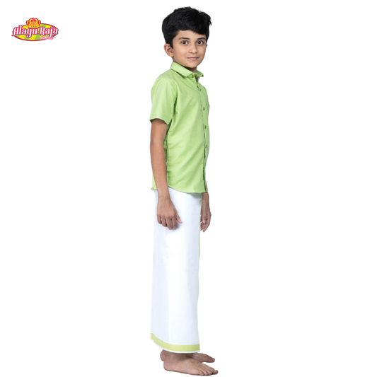 Green Shirt & White Dhothi | Boys Dhothi Set | Kids Ethnic Wear